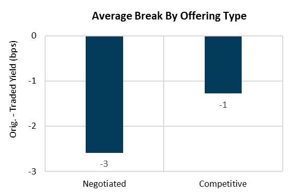 By offering type, negotiated deals broke approximately -3 bps firmer versus -1 bp for competitive sales— consistent with historical negotiated vs. competitive dynamics.